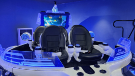 這是一款獨(dú)樹(shù)一幟的VR娛樂(lè)設(shè)備,不僅形態(tài)別致,還擁有著引人入勝的科幻環(huán)境藝術(shù)。跳進(jìn)時(shí)空飛碟,你將穿越時(shí)間和空間,踏上未來(lái)之旅!